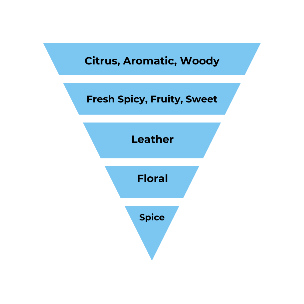 Bblending woody, citrus, mossy, fruity, earthy, sweet, fresh spice, tropical, patchouli, and aromatic accords.