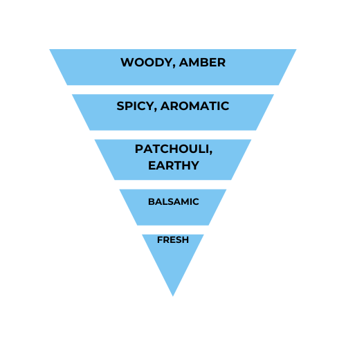 Oriental spicy notes blend seamlessly with accords of woody, amber, warm spice, aromatic, patchouli, balsamic, earthy, and fresh spice.