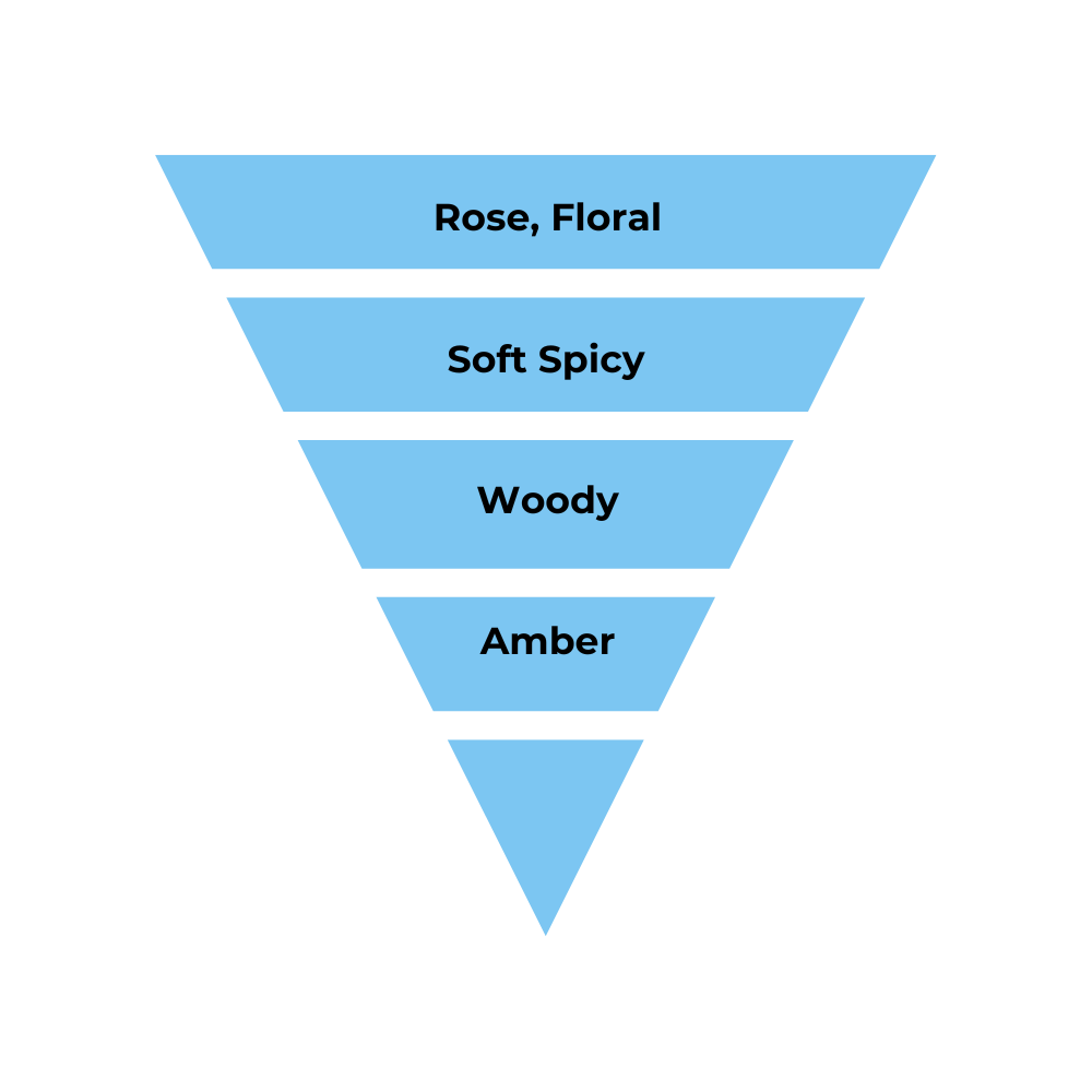Oriental Spicy fragrance with captivating accords of rose, floral notes, soft spice, woody undertones, and a touch of amber.